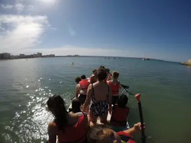 - 1 heure de Stand up Paddle géant : vous monterez tous ensemble à bord pour naviguer en même temps dans une seule et même planche de paddle géante ! Celle-ci peut contenir jusqu’à 10 personnes.